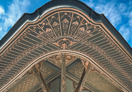 Geländer, Laternenmasten und Zierelemente.